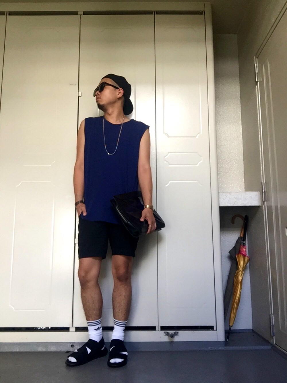 Cut-sewn:H&M Pants:junhashimoto Cap:YOHJI YAMAMOTO×NEW ERA Sun-glasses:TOM FORD Socks:adidas Sandal:Y-3