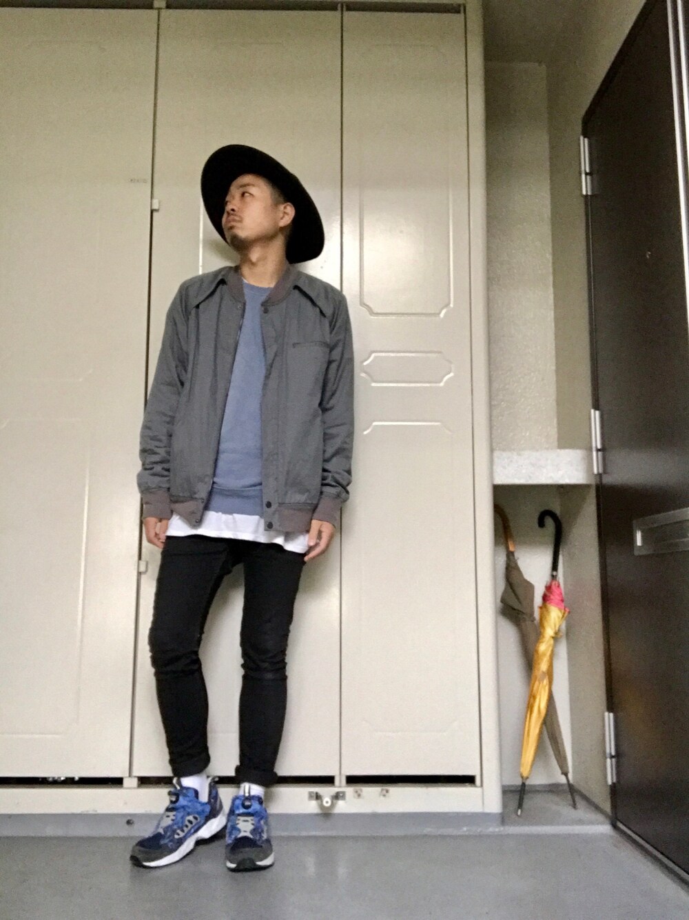 Blouson:T by ALEXANDER WANG Sweat:H&M Pants:H&M Shoes:Reebok Hat:WEGO