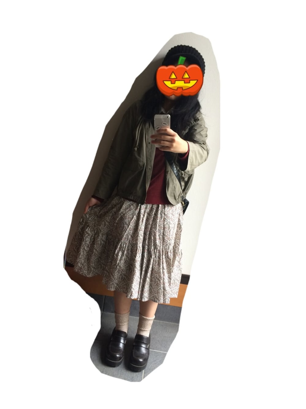 古着スカート RAINBOW ローファー 何年も前に買ったやつ ニット帽 父のを拝借 髪を切ったら3人分くらいの量ですねって美容師さんに言われた