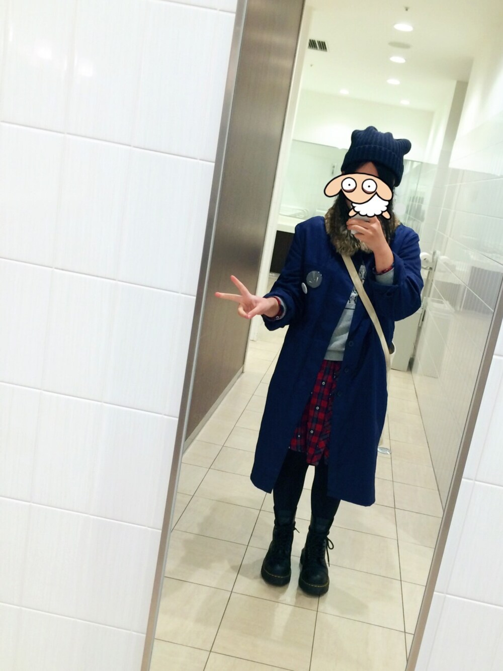 トレーナー・ニット帽:UNIQLO ショップコート:RAINBOW(古着) ブーツ:ドクターマーチン 試着したら買ってしまうなあと思っていたショップコートをついうっかり試着してしまいやっぱり買ってしまった。。