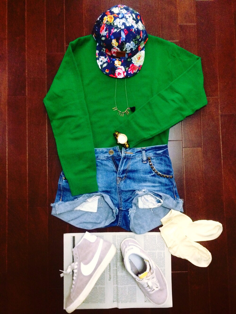 今日はあいにくの雨ですが、 春っぽいCDにしました♬ 緑色のニットはとても鮮やかな色で お気に入りです‼︎ それでは、 お買い物に行ってきまーす(◍•ᴗ•◍) キャップ#dholic トップス#dholic ショートデニムパンツ#ALBUM ソックス#tutuanna スニーカー#NIKE