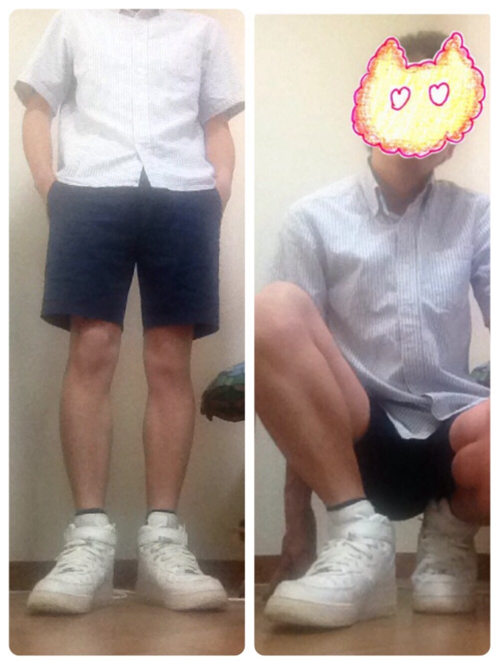 本日のピックアップタグの白いスニーカーです。少しハイカットで重くなるので、ボトムスはやっぱ半ズボンでーす(^^)