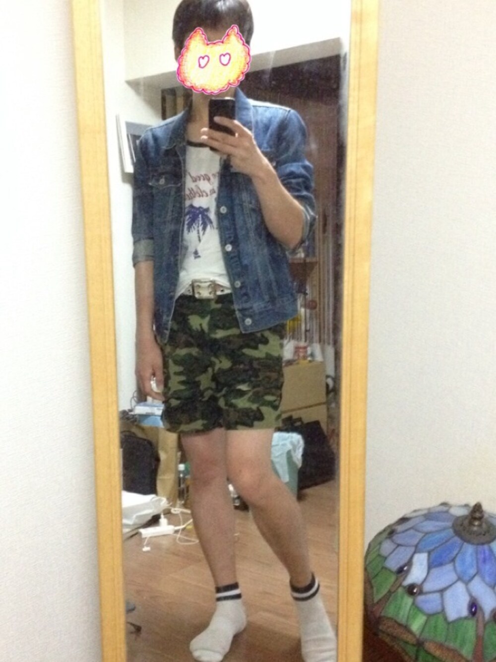 やっぱりカモフラパンツのコーデは難しい! 今朝のコーデは女子たちに小学生の男の子と断言された〜(^^;; 今日はWEAR効果か、カモフラパンツ人口多くない(笑) 町で見かけたいいなあと思ったコーデを真似てみました。みんなカッコ良く決めてるなあ! デニムジャケットにインナーはタンクトップ、そして本日の主役のカモフラ短パン。 どーだろ?