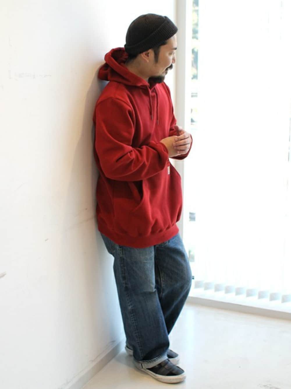 どうもこんにちは、中井です!! 今日はダブッとラフにパーカースタイル!! 大きめパーカーは生地が張らないので本当に 楽ですね!! そして普段はグレーや黒が多いのですが、 今の気分は赤!! メチャクチャおすすめです!! 【carhartt/カーハート】ワンポイントロゴプルオーバーパーカー 間違いなしの逸品!! ワークブランドアイテムは男心をくすぐります!! 対戦モデルなどの労働着時代のジーンズとも相性抜群!! シンプルなコーデっていいですよね!!
