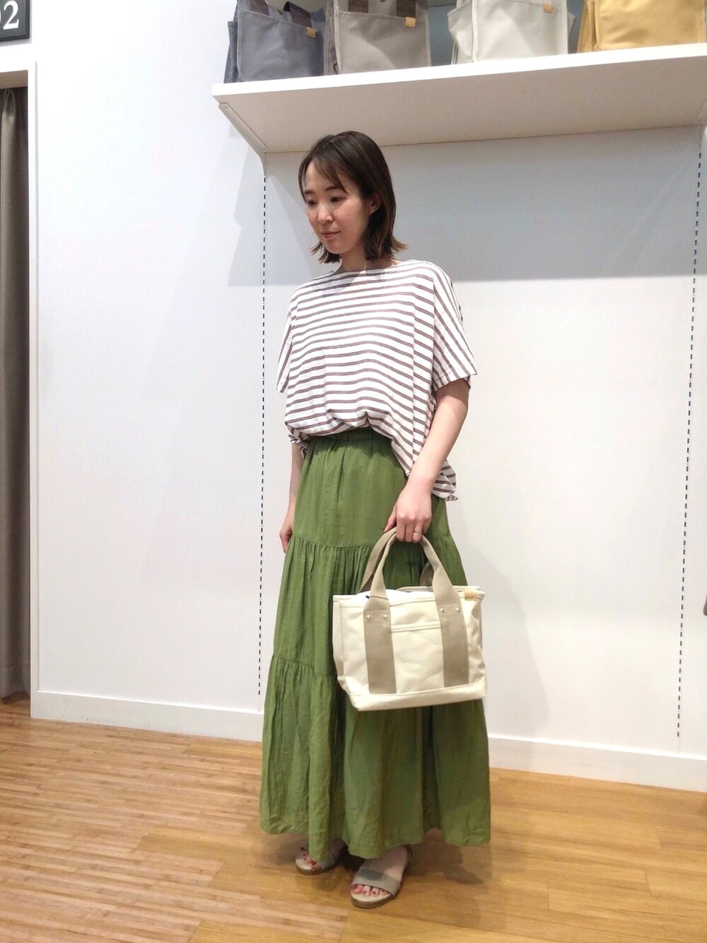 ご覧いただきありがとうございます^ - ^ ひんやり加工が施されたドルマンTシャツとボリューム感が可愛いティアードスカートで、夏らしいコーディネートに♪
