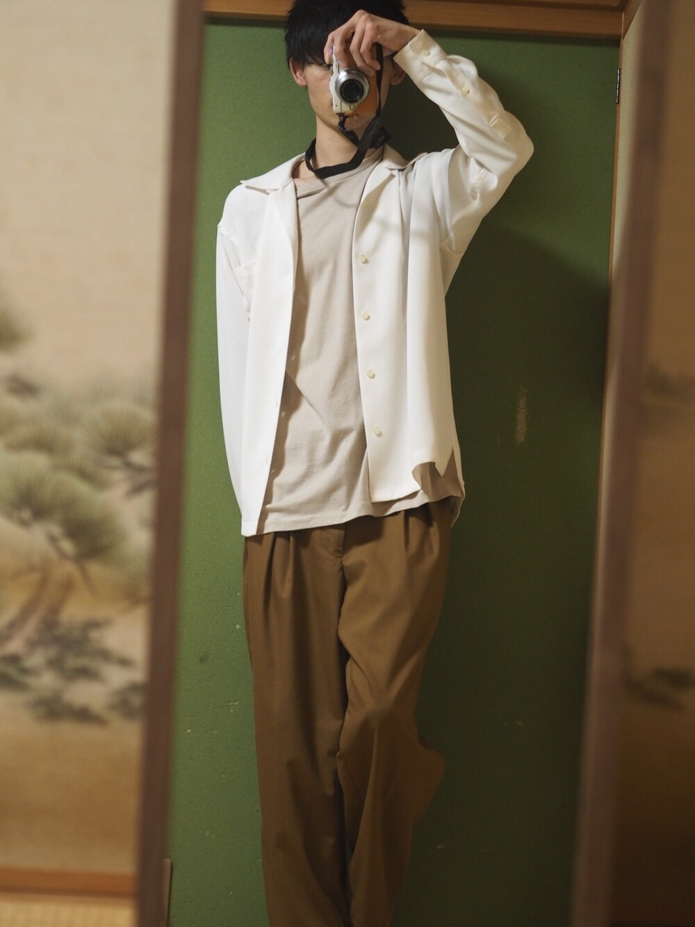 れいじのシャツ/ブラウス「サテンオープンカラーロングスリーブシャツ」を使ったコーディネート