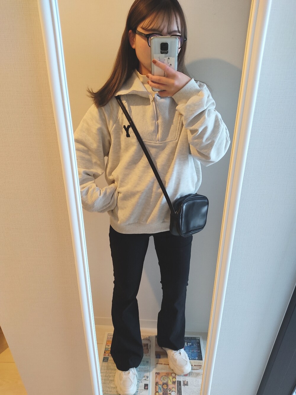 このスウェットお気に入り! 黒フチめがねとの相性もいい感じです🕶