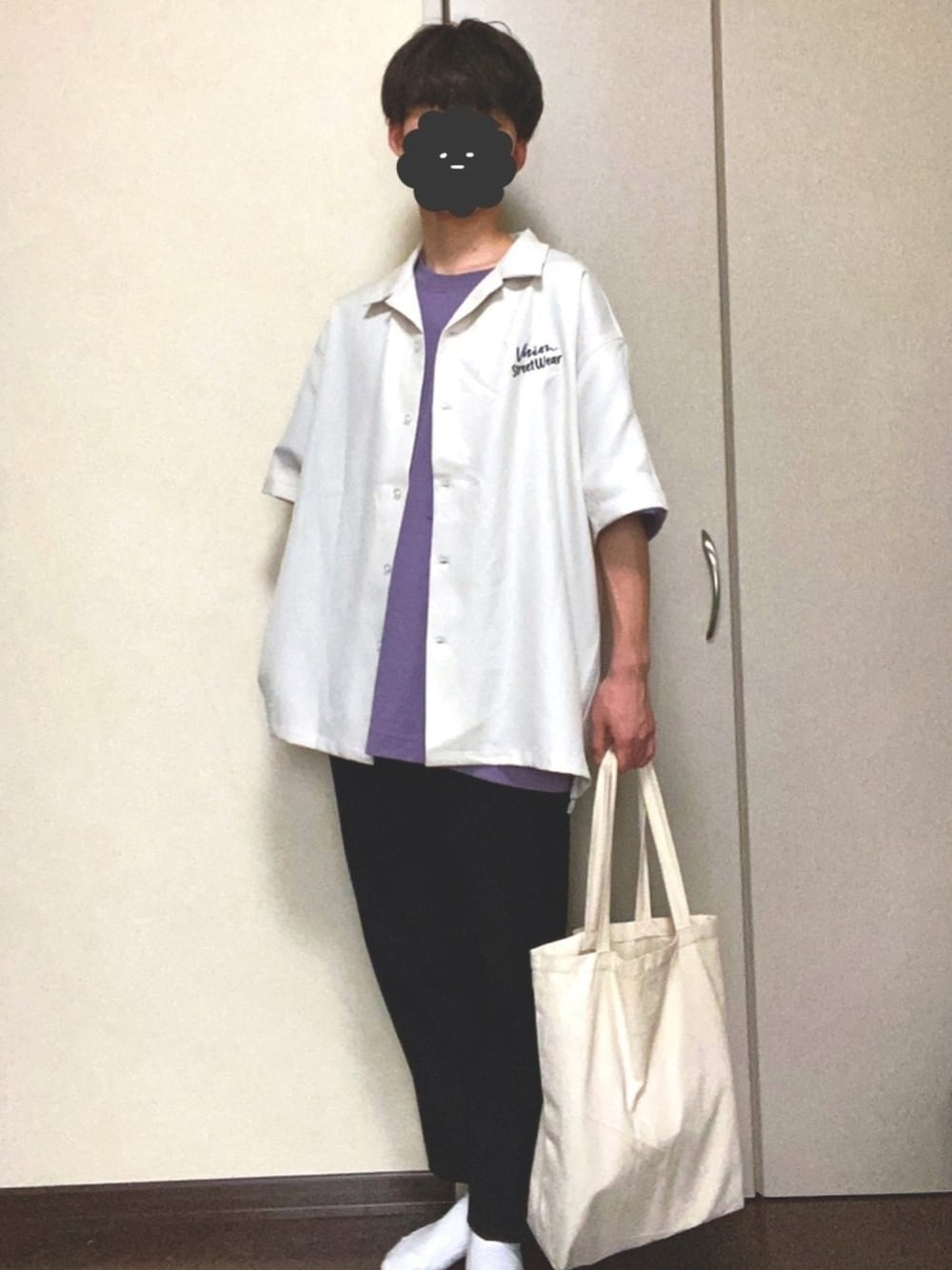 今日の大学コーデです! シンプルなシャツに、差し色で紫を取り入れてみました! 中のTシャツの色を変えるだけで、着回しがききます! また、Tシャツとズボンはプチプラなので真似しやすいものになっていると思います✨