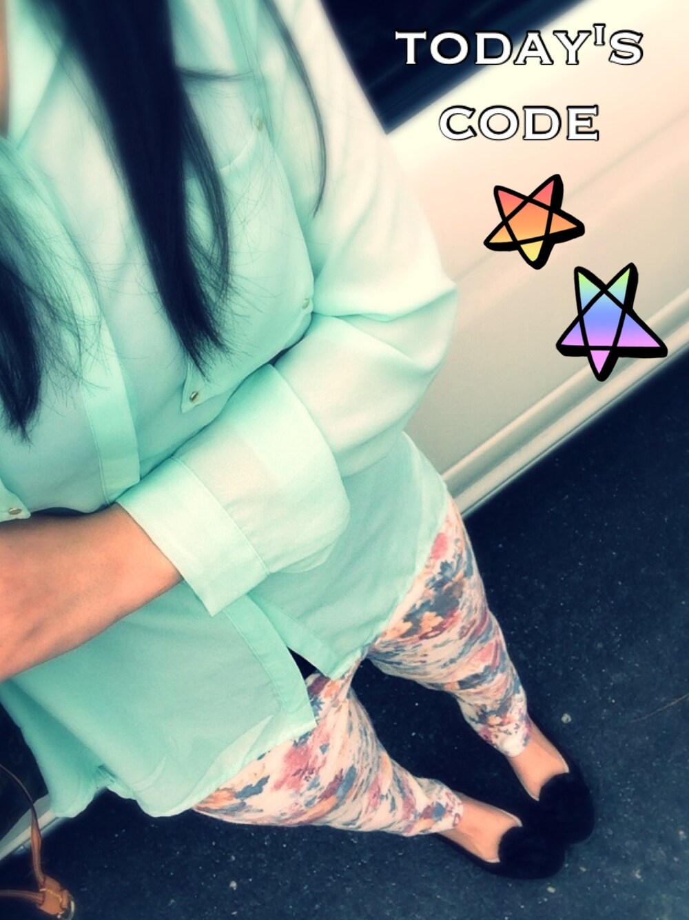グリーン系のシャツ/ブラウスを着用したレディースの春コーディネートの1枚目の写真