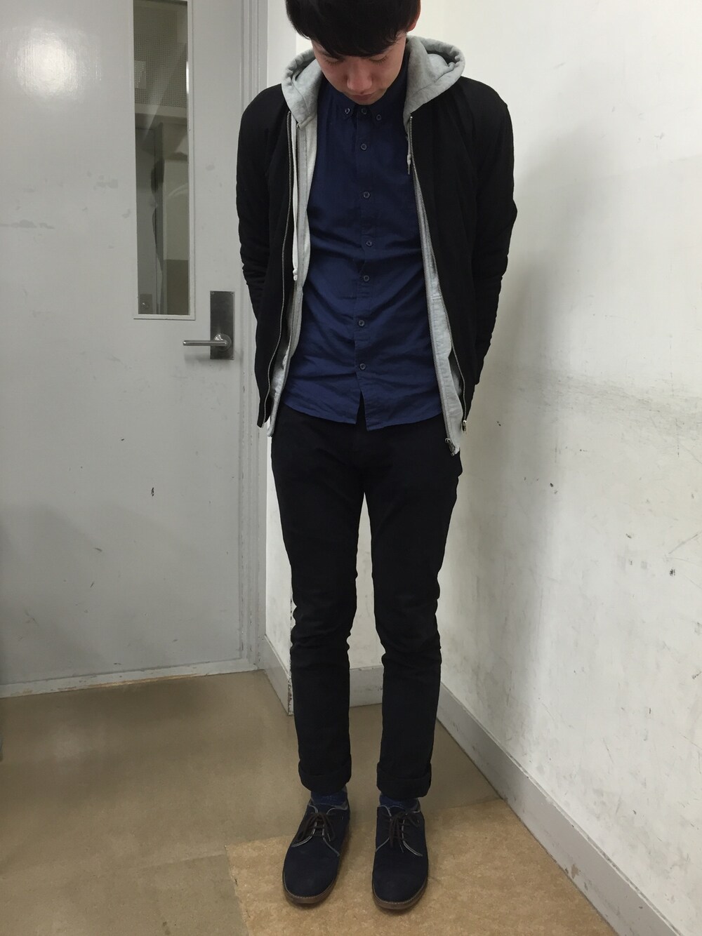〜シャツ×パーカー×MA-1〜 今日暑かったですね〜昼間は中にヒートテック着てたのでパーカーとMA-1はイン ザ バッグでした。笑 このシャツは細身でサイズ感ぴったりで気に入ってます✌🏻️ 友達に今日なんかめっちゃ足細いね!って言われてちょい気分あがった日。黒でスキニーだからね!笑