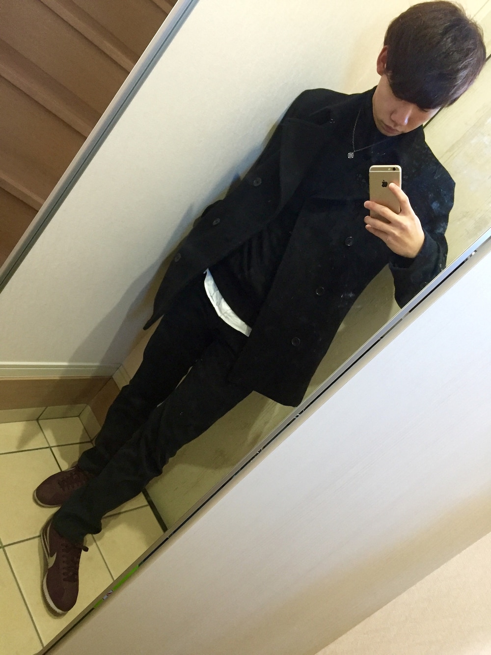 オールブラック…と見せかけスニーカーではずしました😏スニーカーの色ボルドーなんですけど思ったよりパンチがなくてミスった感。 ピーコート×タートルネック×ネックレス はめちゃめちゃ好きな組み合わせ( ̄▽ ̄)