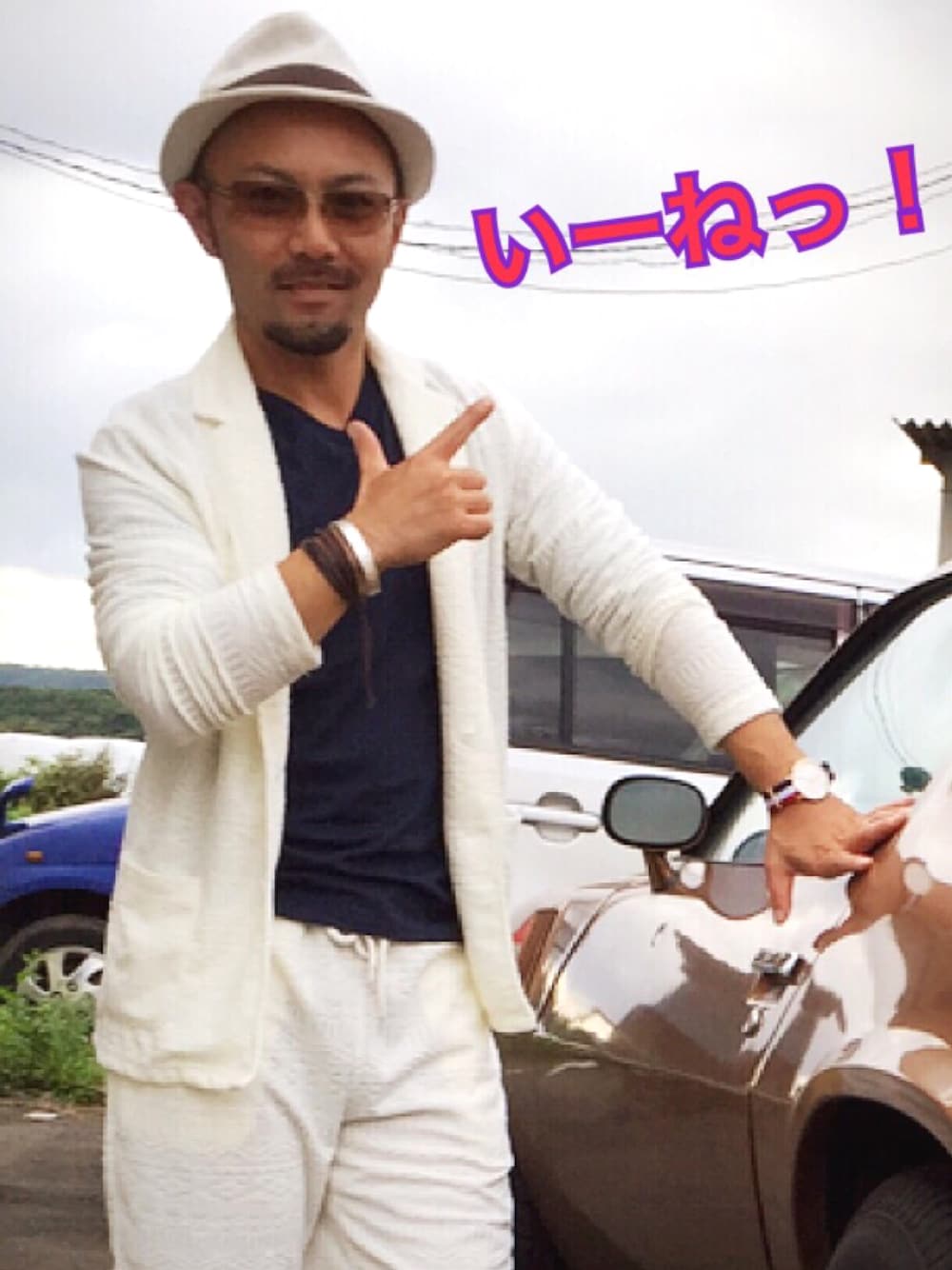遡りシリーズ 夏の那須。 HVCのセットアップに同系色のハット。 インナーは黒で引き締め。 もちろん、クレイジーケンバンドの横山剣を意識してます。 僕はクレイジーですがケンではないです。 親父はケンです。