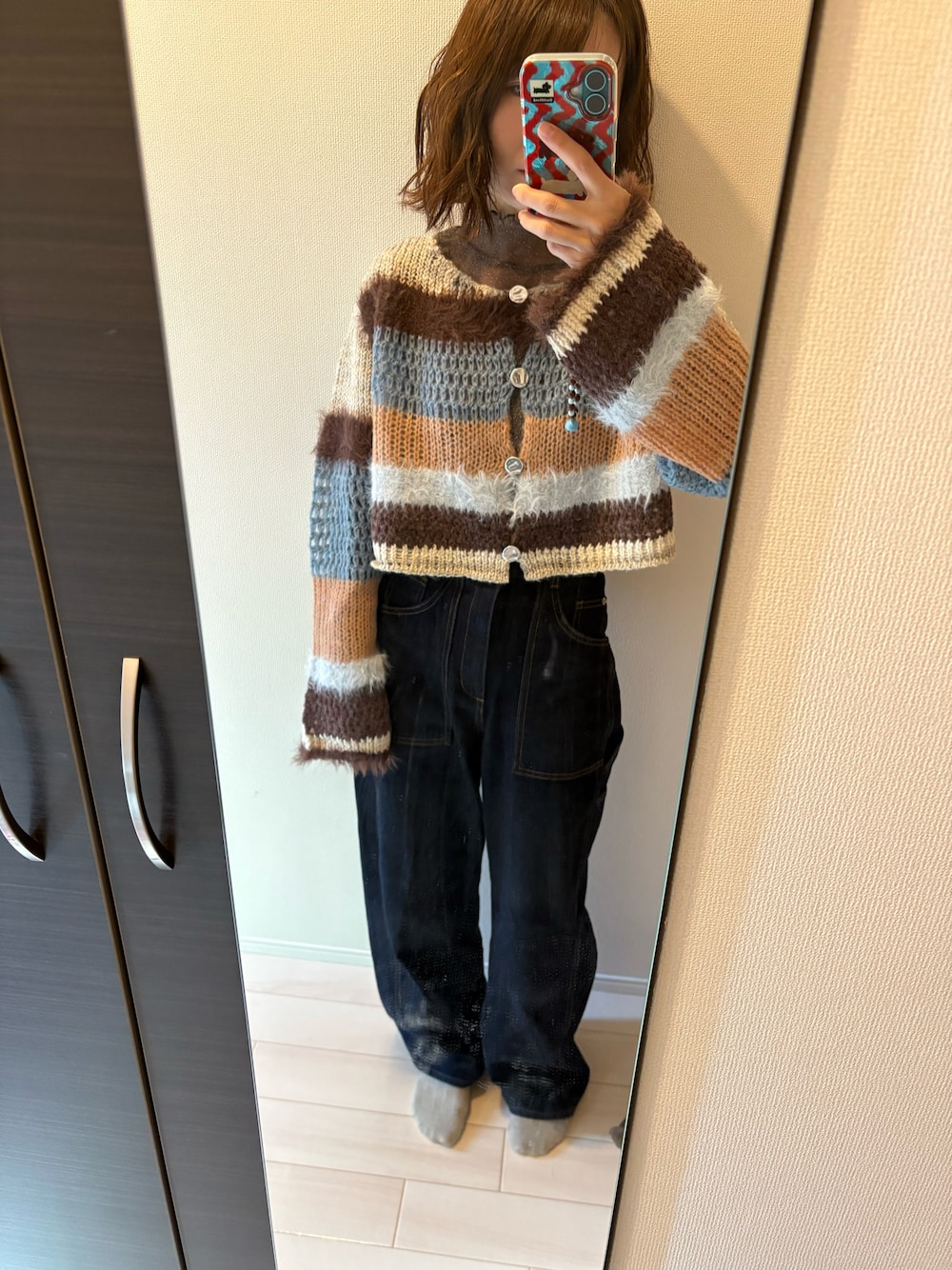 haruのニット/セーター「ボーダーニットカーディガン」を使ったコーディネート