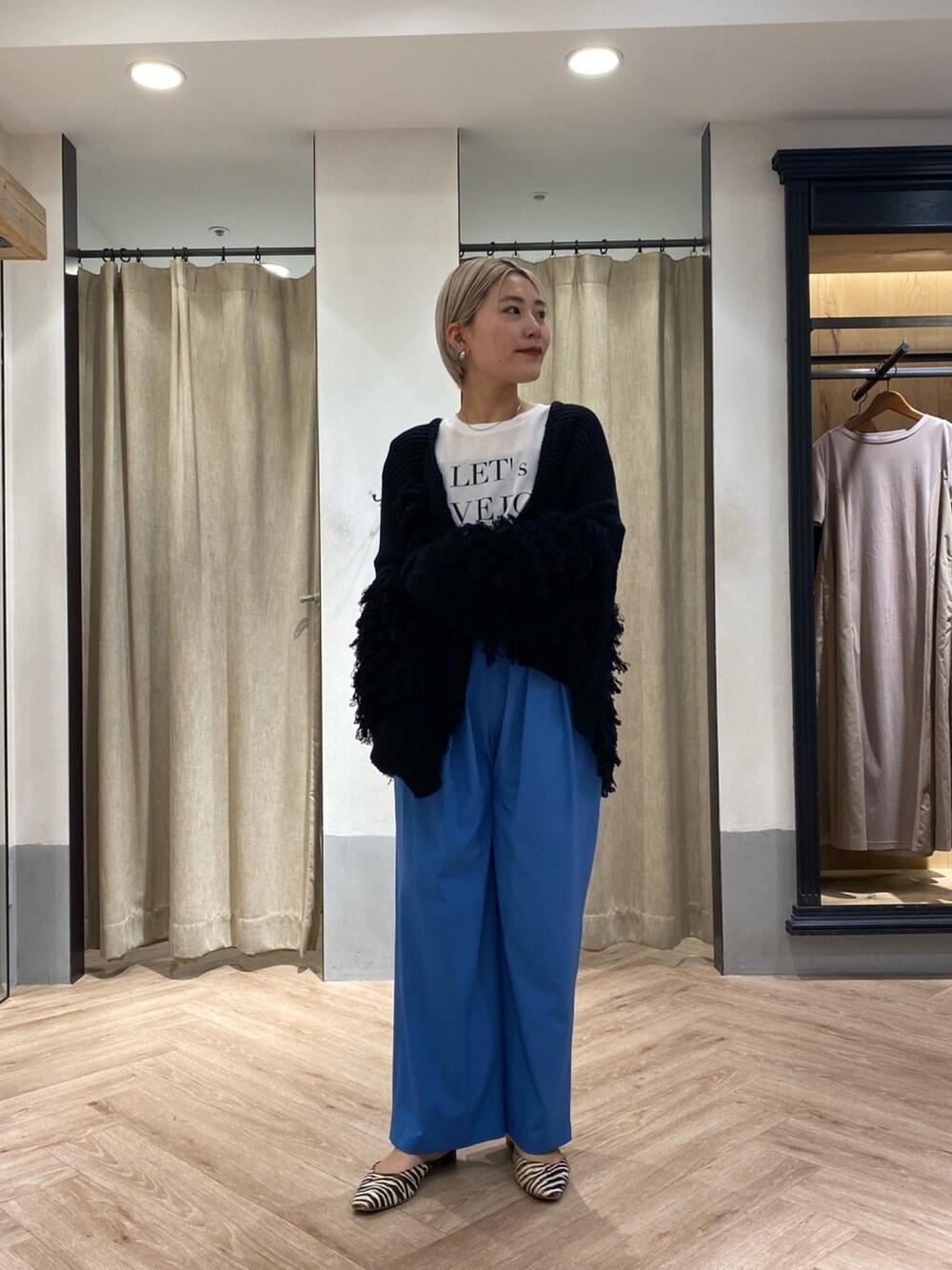 ポイントになるフリンジカーデを 使ったコーデ。 instagram ▶︎yabu_lemage
