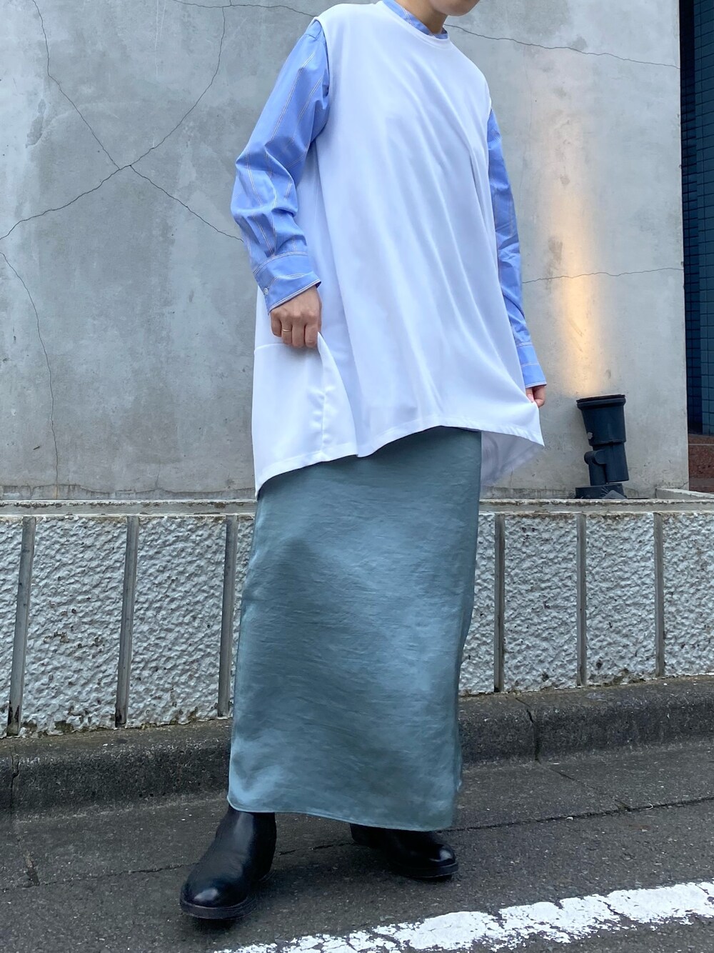 増井春妃/masui haruhiのTシャツ/カットソー「DROIT BELLO(ドロイトベロ)後ろ切り替えコクーンチュニック」を使ったコーディネート