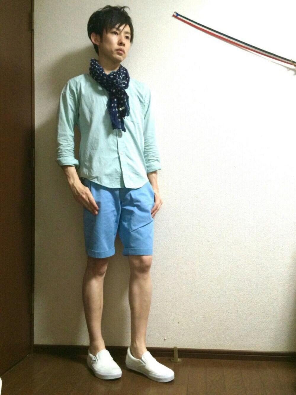 ご訪問ありがとうございます m(_ _)m✨ 今日のテーマは 『レイニー🌂パステル』 の、筈が。。見事に晴れてしまいました💦 雨の時はドットが着たくなります。 グリーンのシャツとハーフパンツは 敢えて濃淡をつけずに淡くして、ネイビーの麻ストールと白スニーカーでメリハリをつけてみました。 もう少しで梅雨ですね☔️ 湿度との戦いがそろそろはじまります😩