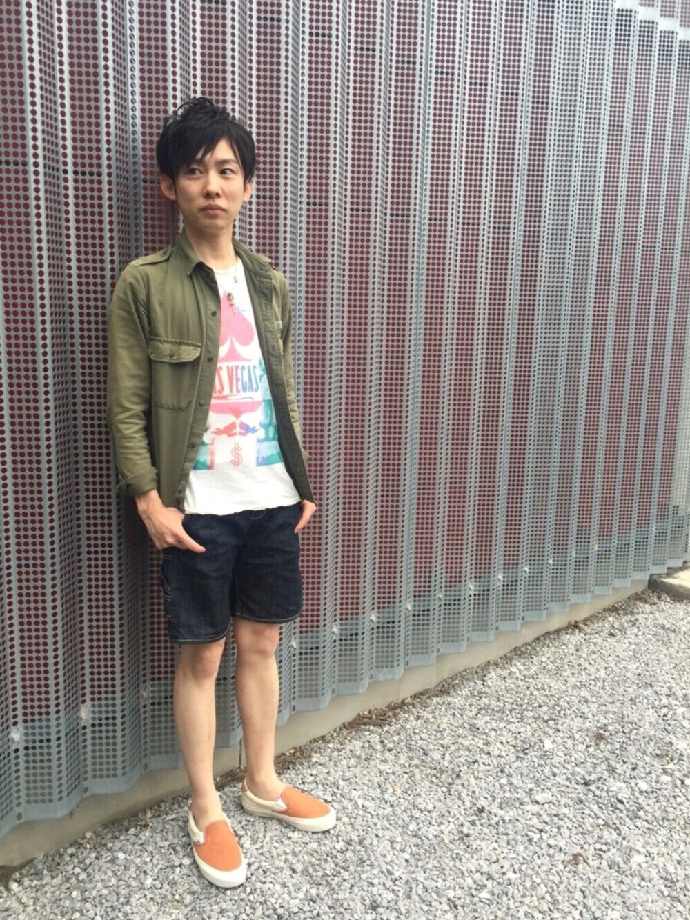 ご訪問ありがとうございます m(_ _)m✨ いいねやセーブ、フォローもありがとうございます💦 あまり積極的ではない自分ですが、まめに遊びにいかせていただきます( ´͈ ᗨ `͈ ) 今日はプリントTシャツが着たかったのでそれをメインにコーディネートしました🎵 Tシャツ👕はシンプルなものか、着古したような質感のものが好みです。 マークのTシャツも首、袖や裾にダメージが施されていてこなれた感じが良いです👍 ラフさを崩したくなかったので、ラウンドハウスのデニムショートパンツ、Tシャツの色に合わせてお気に入りのバンズをチョイスしました🎵 まだ今年のトップスの半袖デビューは我慢でいきます👕