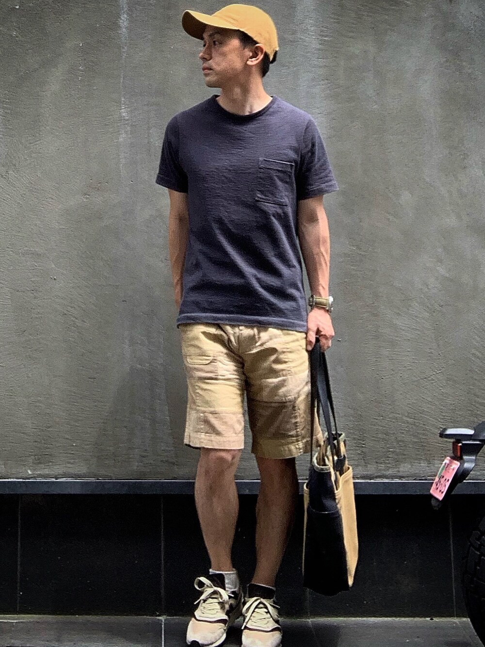 ⚫️ x 🟤でまとめるとtシャツハーフパンツでも大人っぽく。