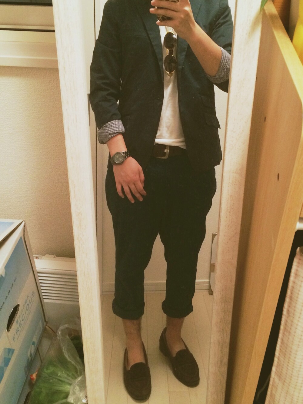 気に入った緑のジャケットを購入したので。 同素材、同色とセットアップになるようなパンツを苦労して探した!セットアップスタイルです^ ^