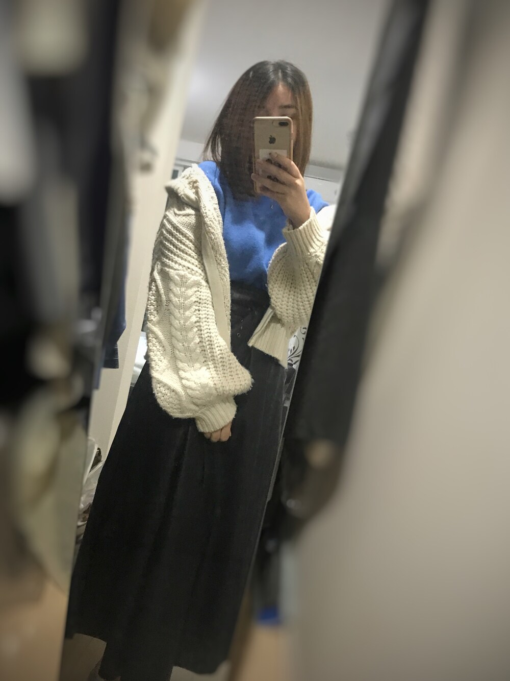 初投稿😆🙌 今日は美容室に行って10cmくらい髪を切ったので、何となく投稿チャレンジ。 先日女友達と映画デートでイオンに行った際AZULで買ったスカート。 レザーではなく、母曰く「安物っぽい」が個人的にはとても可愛いと思う。ポッケもあるし、作りもしっかりしている。 なかなか持っていない系統の服で、正直迷ったけど、新しいスタイルにチャレンジしてみました!👍 目指せ、イメチェン✨ ファッションセンス皆無の私を見かねた友達が「可愛い、似合う」と後押し、試着して、他のアイテムとの合わせ方を相談して結果可愛いから購入💐 母もファッションセンスがある方ではないし、「おばさんには分からない」との事でかなり気に入らなかった様子🥲 母の意見や見られ方を気にしてしまう方なので、ちょっとダメージ受けたけど、家に帰って着回しを色々考えたらめちゃめちゃ着回しできそうで、楽しかったので結果オーライ! この日、他にもこのスカートと合わせるアイテムを揃えるべくAZULではこれと一緒に合いそうなブラウン系のハイネックリブニットと、OPAQUE CLIPで写真のブルーニットを購入。着回ししやすそうなアイテムでハッピー😆 今日はその日買ったスカートとセーターに、寒い時に羽織る用にカーディガンを持っていきました!最初このカーディガンが合うか心配だったけど、意外と合ってるかな?意見頂けると嬉しいな💜 ファッションセンスないので、ご意見、アドバイス、着回しアイディアなどあったら教えて頂けると嬉しいです☺️