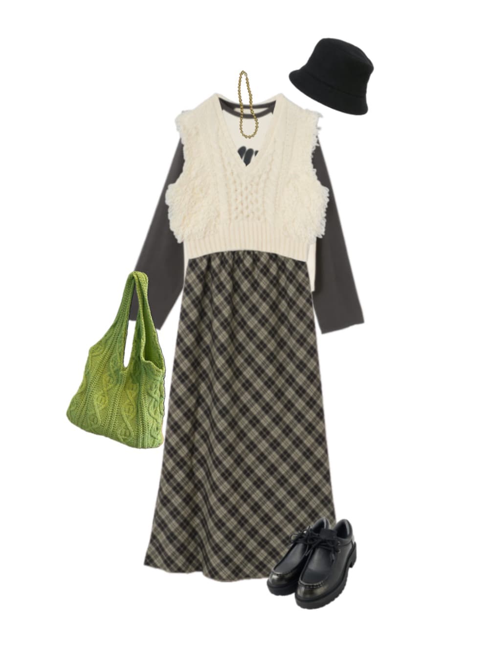 sowaのベスト「フリンジループニットベスト」を使ったコーディネート