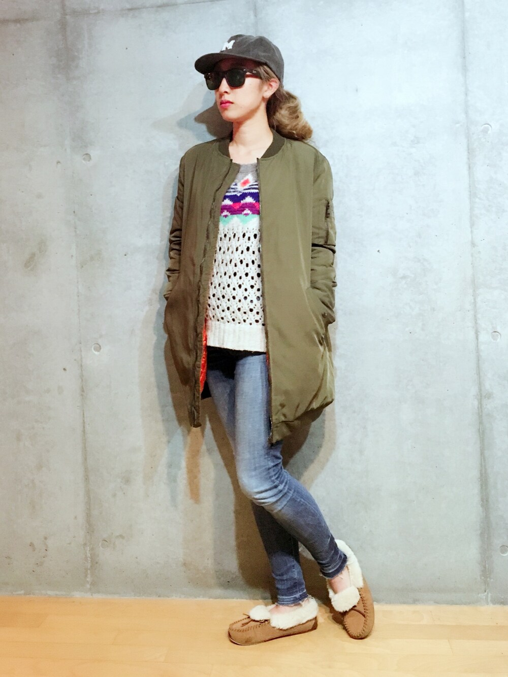 今日は寒かったのでロング丈のMA1で防寒💂🌀 セーターはニューヨークで5年前くらいにゲット🙌ミネトンカはお土産でもらったおきにいりー☺️💓