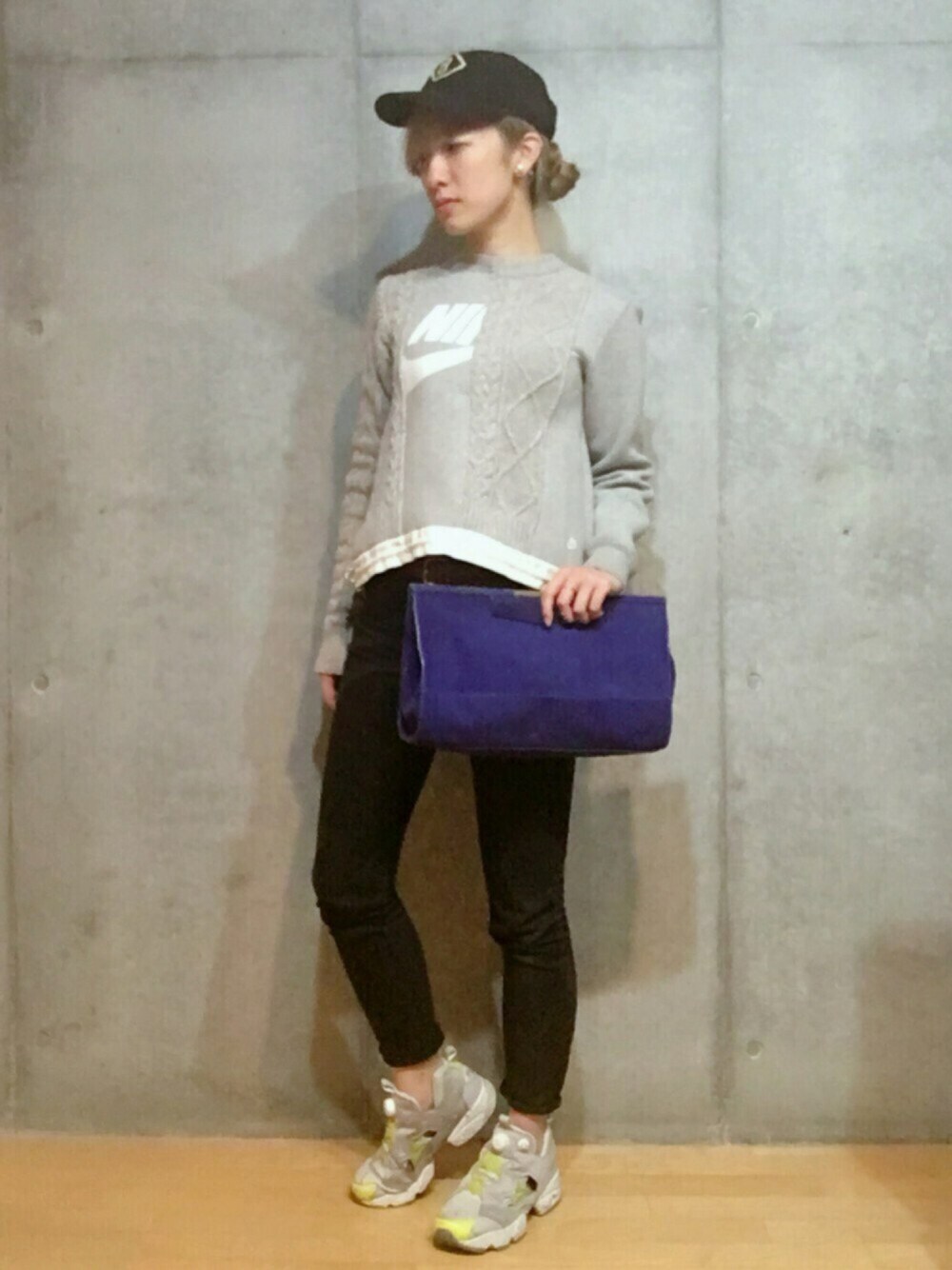 見ていただきありがとうございます🙇💦 今日は野球観戦だったのでスポーティに⚾️ トップスは去年sacaiとナイキのコラボでスウェットとニットのミックスがかわいくて一目惚れしました😍 ポンプフューリーはカスタムしてプレゼントしてもらったものです☺️🙌差し色の蛍光グリーン?イエローがお気に入りです😊💓