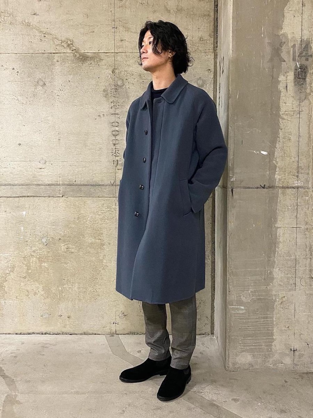 ●年齢:30代前半 ●身長:176cm ●普段サイズ:トップスL/ボトムスM 【サイズ感】 アウター:Aラインシルエット トップス:ゆっくりとしたシルエットでテーパードシルエット ボトムス:テーパードシルエット 【素材感】 アウター: 表生地; 毛50% ポリエステル25% ナイロン25% 裏生地;ポリエステル100% トップス:コットン100% ボトムス: ポリエステル64% レーヨン35% ポリウレタン1% 【コーディネートポイント】 すっきり・スマートに見えるイージーパンツのストレッチ チェック 1P イージーパンツを足元に選んでおります。細身のシルエットながらタック入りでスラックス見えする生地感なのでカジュアルな服装でもキレイめな服装でも合わせられます