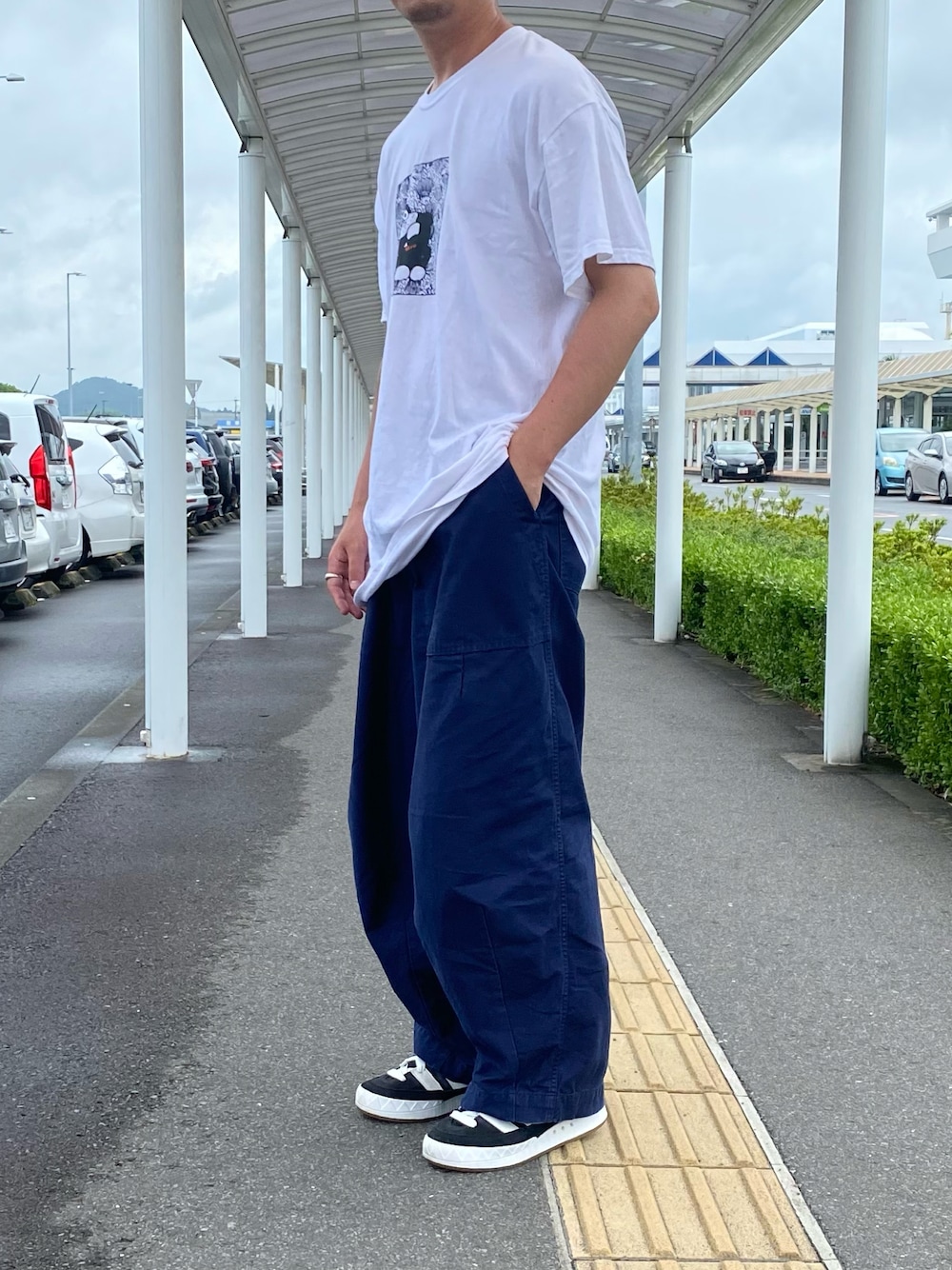 緩めのファッションに足元のコンパクトな丸みのあるデザインは良い。 ちなみに、、Tシャツのデザインフォトの色とパンツの色はあえて合わせてます。