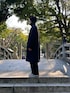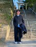 全体的にグレーで合わせて 差し色として ブルーをレイヤード