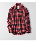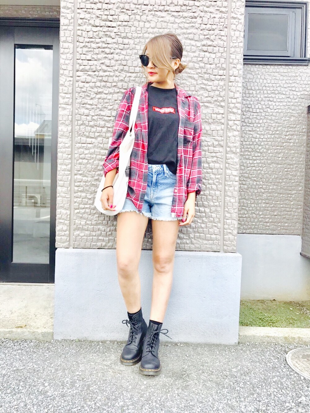 レッドのチェックシャツと Dr.Martinを合わせたアメカジコーデ