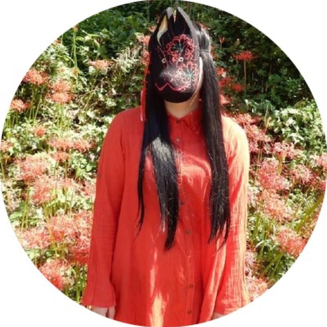 狐面作家。 ギャラリー経営してます。 平日はカジュアル・土日は着物着て出勤中 背景は店内です。 古着と着物が好き。 服は古着か海外(タイ)で買うものがほとんどです。 (系統は和風〜アジアン・エスニック) タグはほぼ「タイ」になると思います。 カットソーやシャツは無印良品がお気に入り。 アクセサリーはヴィヴィアンがお気に入り。