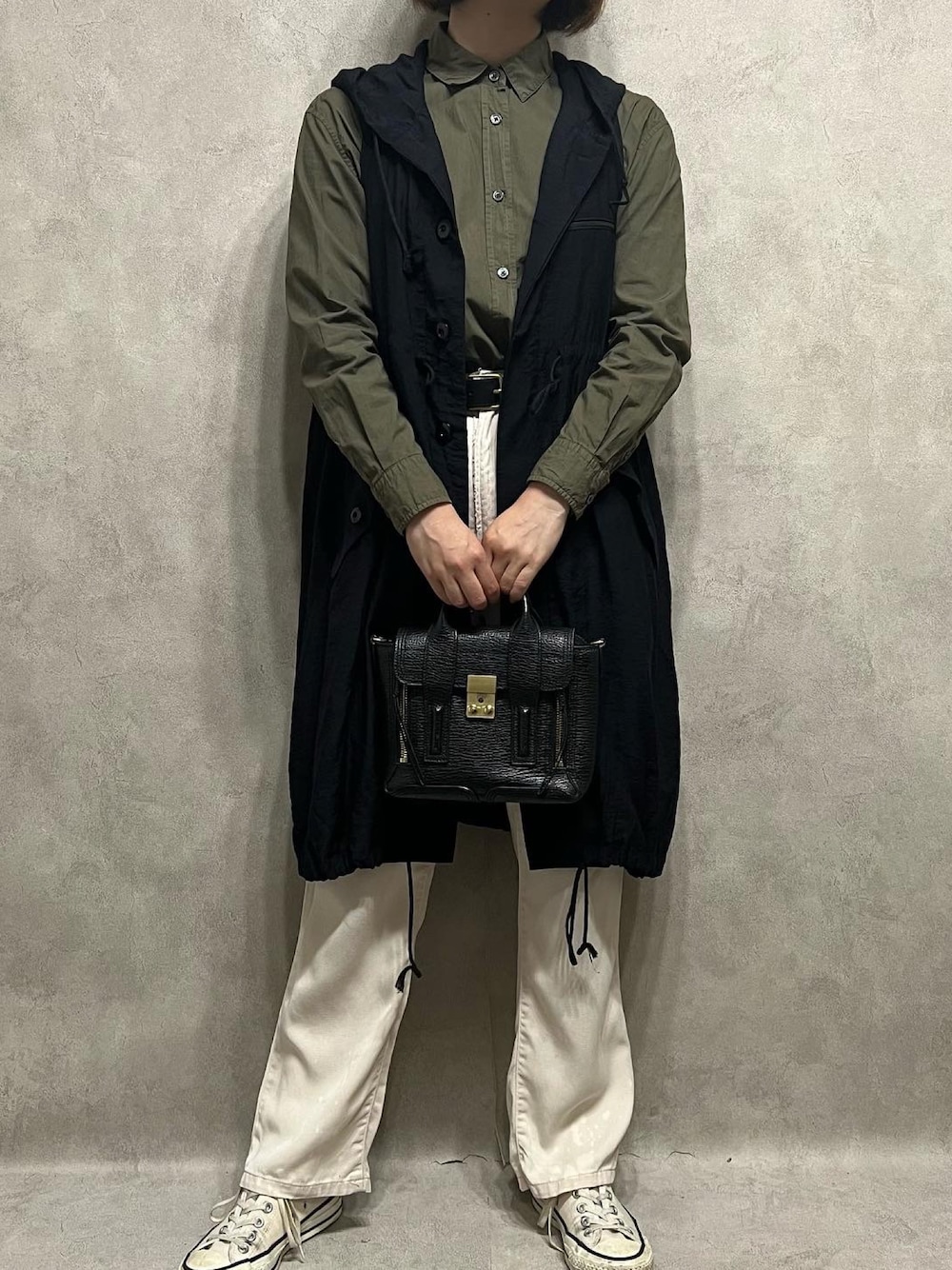 着用アイテムはインスタから購入できます😊 インスタ→@moss.official ▪︎フード付きロングジレ ¥1,280(tax in) ▪︎UNITED ARROWS TOKYO ステッチ入りコットンシャツ ¥1,850(tax in) ▪︎オフホワイト ストレートパンツ ¥1,380(tax in)