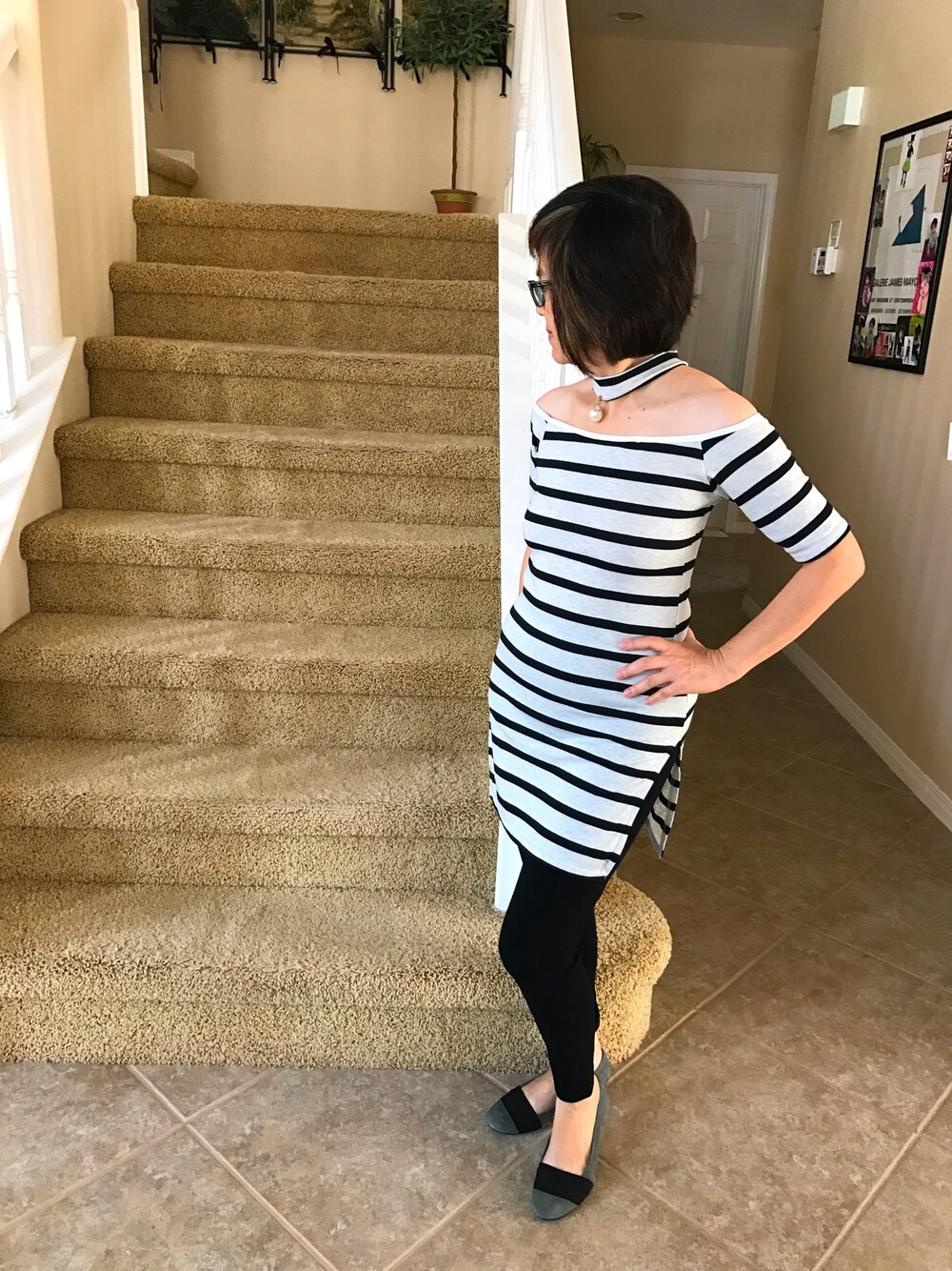 New dress, leggings from the 90s, shoes in my garage. I love to combine the old and new.