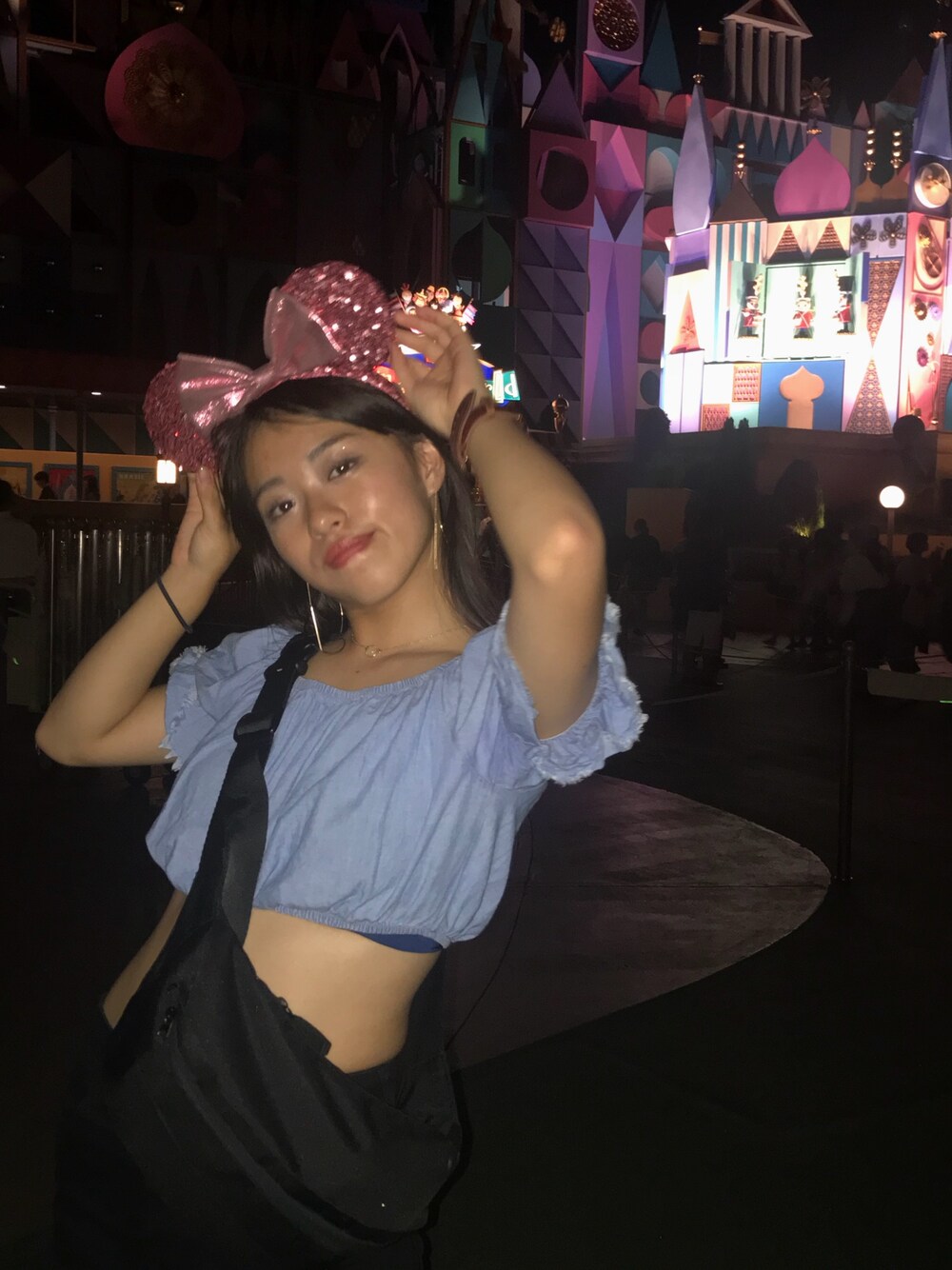 アフ6行ってきた🏰🐭🔥 お盆は混み過ぎて秒で終わっちゃった、、ビックサンダー並んでたのが思い出かな笑 ピンクのキラキラとシルバーのキラキラのカチューシャは光が当たると反射して光ってくれるので朝でも夜でも可愛くてオススメです🤤✨💋 ベルシュカのトップスお気に入り💜
