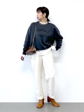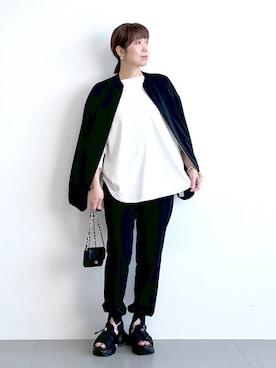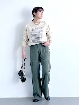 特に、肩まわりがしっかりしているのでトップスのサイズ感、二の腕細見え、腰回り等のシルエット、脚のラインの見え方には気を使っています。骨格はナチュラルです。