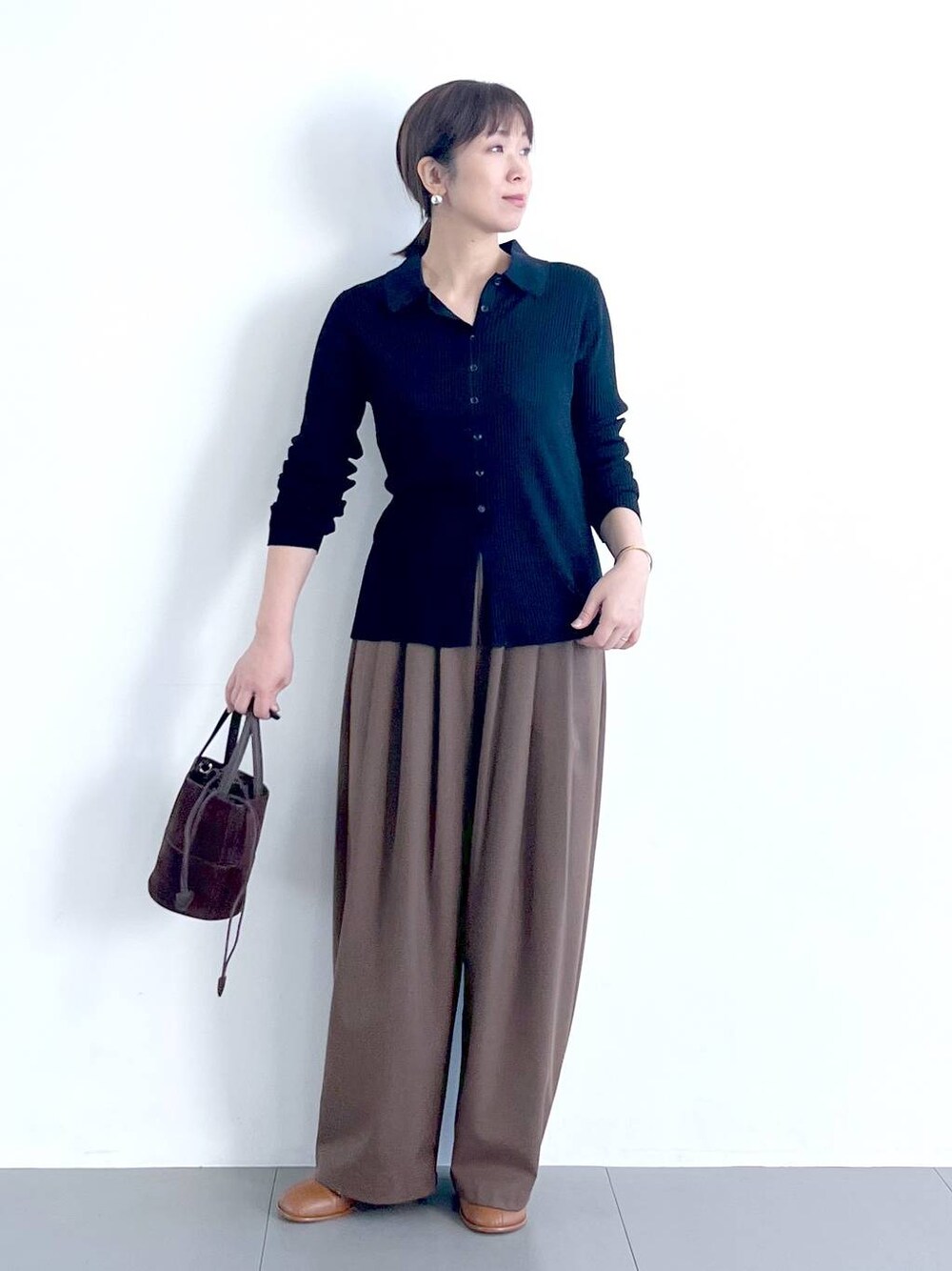 NEWリブニット👚 柔らかな着心地の着痩せニット🥰ゆるめのリブで肉感は出にくく、襟付きでVネックでデコルテスッキリ、裾は下の方にボタンがなく、縦長シルエットで細見え✨ 袖もくしゅりとさせて余裕とゆとりを演出。 肌触りの良いシルク混🧡 冬のタタックパンツ👖❄️ 裏起毛が暖かい、形は人気のタックが多めのコクーンなワイドシルエット。内側にドロストの紐があり微調整可能です✨表面感はサラリとしてキレイめで、オフィスコーデにも活躍。 足元はブーツやローファー、スニーカーも合わせやすくデイリーに着回せる万能ボトムです😍 右下の♡ハートマークをポチでお気に入りに。後でまとめて見れて便利! ◾︎フォローしていただくと、最新スタイリングをすぐに確認できます☺︎ ◾︎ もご覧ください。お気軽にフォロー下さい( ^∀^)