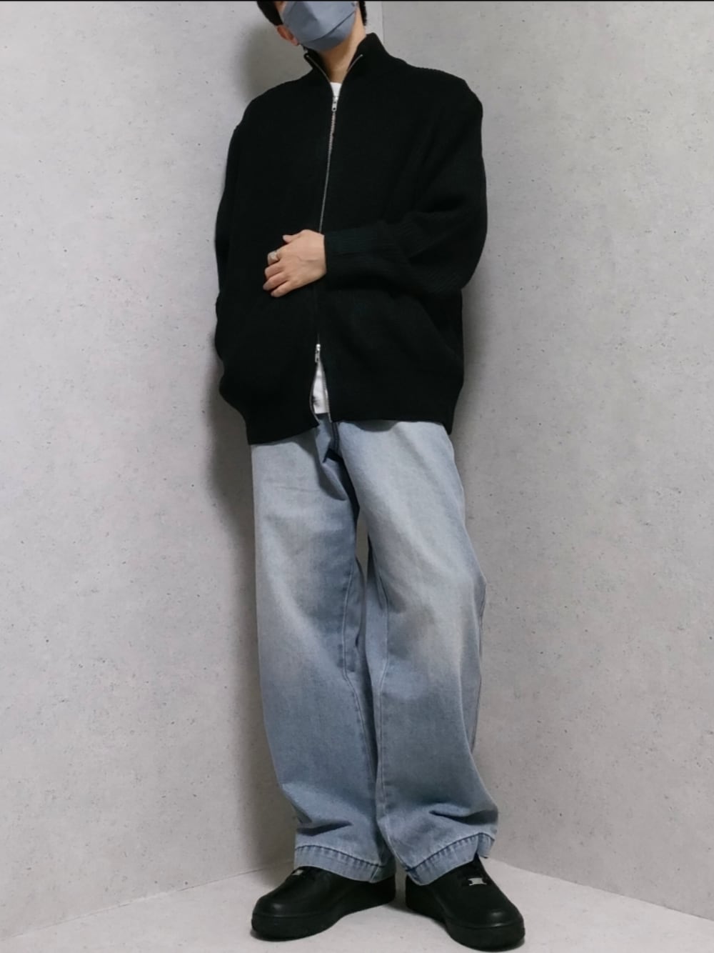 simのデニムパンツ「【SERACE】Loose silhouette vintage denim wide pants / ルーズシルエットヴィンテージデニムワイドパンツ」を使ったコーディネート