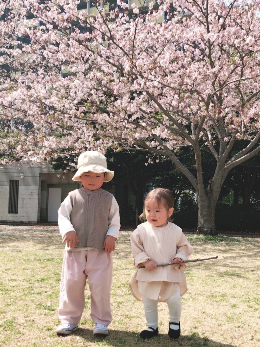 Thank you 😌🙏 𓂃⋆ ꙳ ♡、save、素敵なフォルダin、フォロー いつもありがとうございます𓆸 -------------------------------------- お花見兄妹リンク🌸 𓈒𓏸𓐍 この日はお弁当持って お花見に行きました😌 母もベストでリンクしちゃいました✧ 子どもたち楽しんでくれて良かった🙌💓 2人の写真って毎回撮るの苦戦。 下の子がちょこまかと…😂笑笑 何十枚って撮った奇跡の一枚が 兄は小動物みたいなポーズしてるし (プレーリードッグみたい) ↑↑わかりますか?笑笑 妹棒持ってる!! コーデとは真逆のヤンチャ感半端ない😂 もう母汗だくっすよね💦笑 --------------------------------------