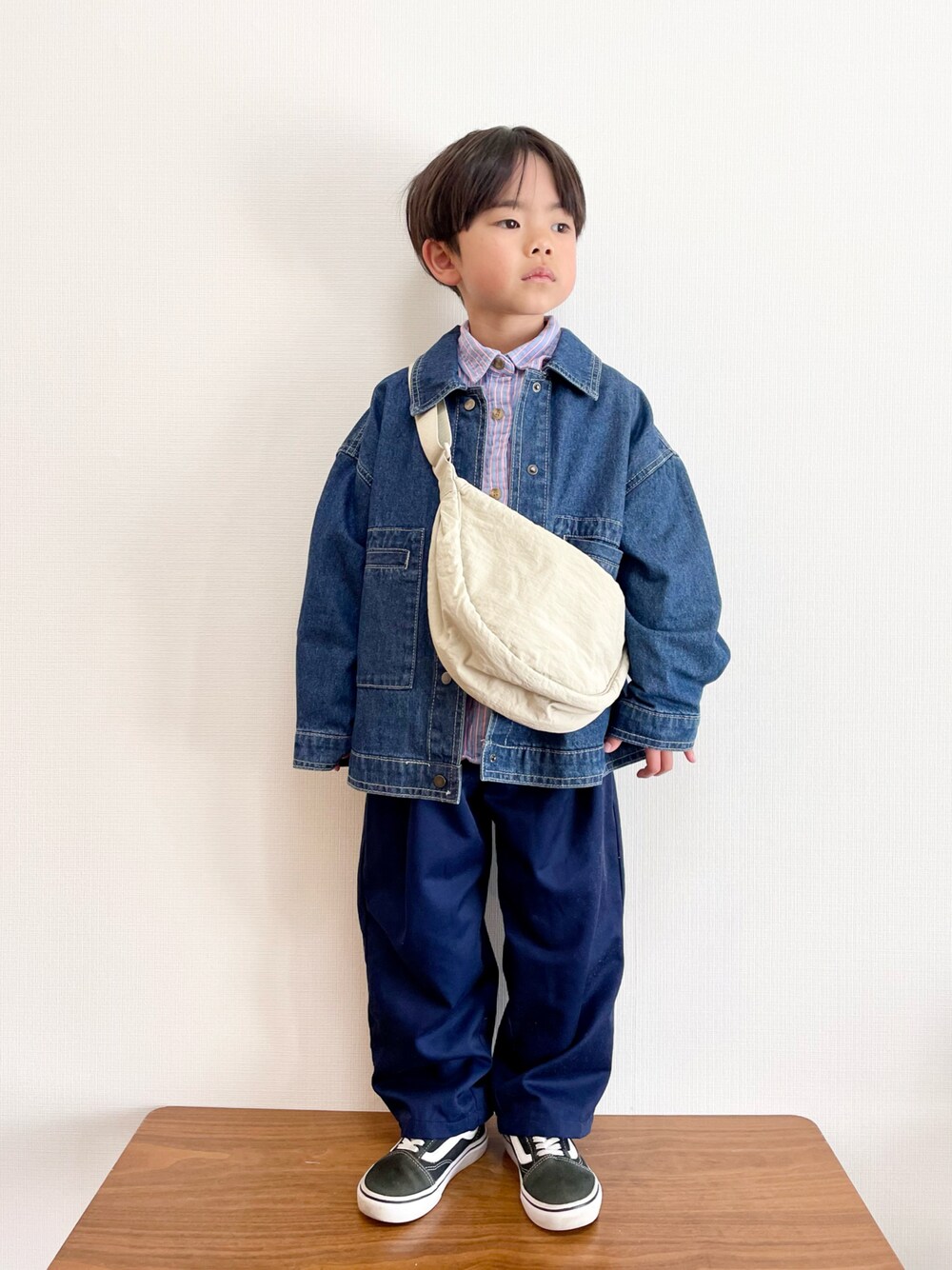 892kiのデニムジャケット「デニム配色ステッチジャケット」を使ったコーディネート