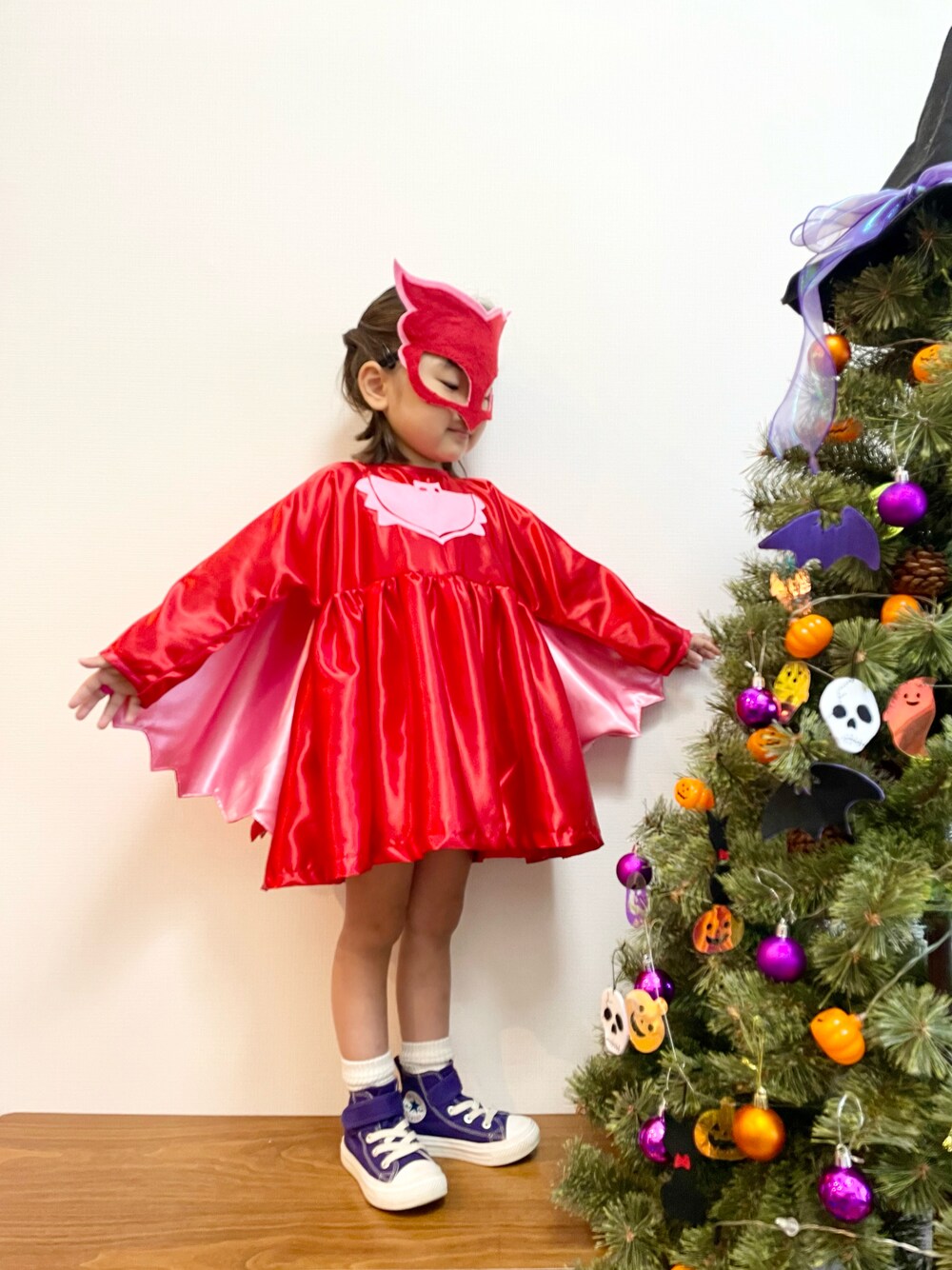 今年のハロウィンは プリキュアと迷った結果、 パジャマスクのアウレットになりました🦸🏻♀️❤️ (だいぶマイナーなとこいくな〜w) ちなみに七夕の時のお願いは ヒーローの洋服を着られますように だったので叶ったね😌🌠 幼稚園のお友だちは 知ってたりするみたいだけど みなさん、パジャマスク わかりますか😂😂??