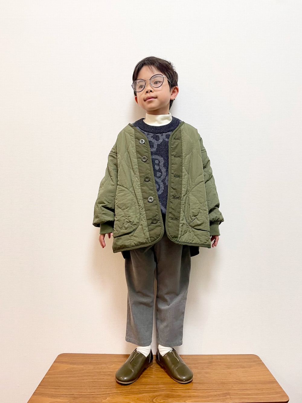marimekkoのニットと キルティングジャケット合わせて きれいめカジュアル🤩 身長 114cm 🧒🏻