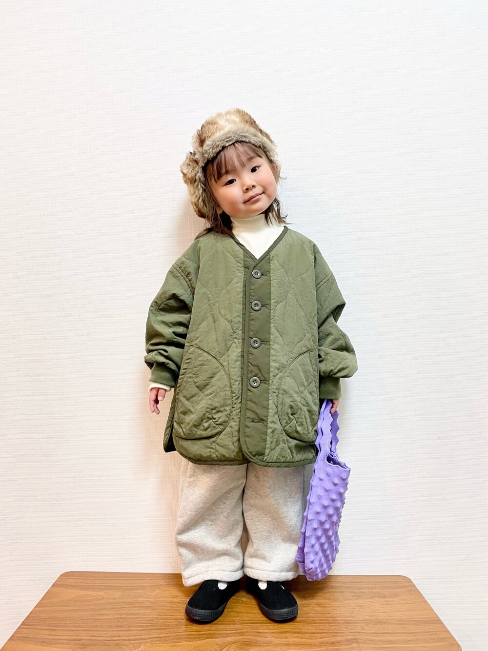 ☑︎ ︎Bottoms ボアスウェットワイドパンツ 02 LIGHT GRAY / 100cm 着用 身長 100cm 👧🏻