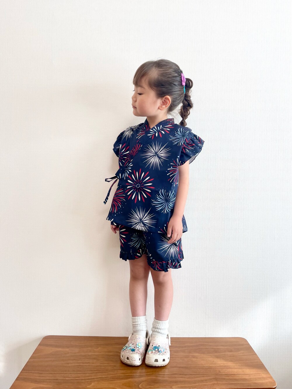 892kiの浴衣「ICE FABRIC 接触冷感 綿タッチ フリル甚平 ジンベイ」を使ったコーディネート