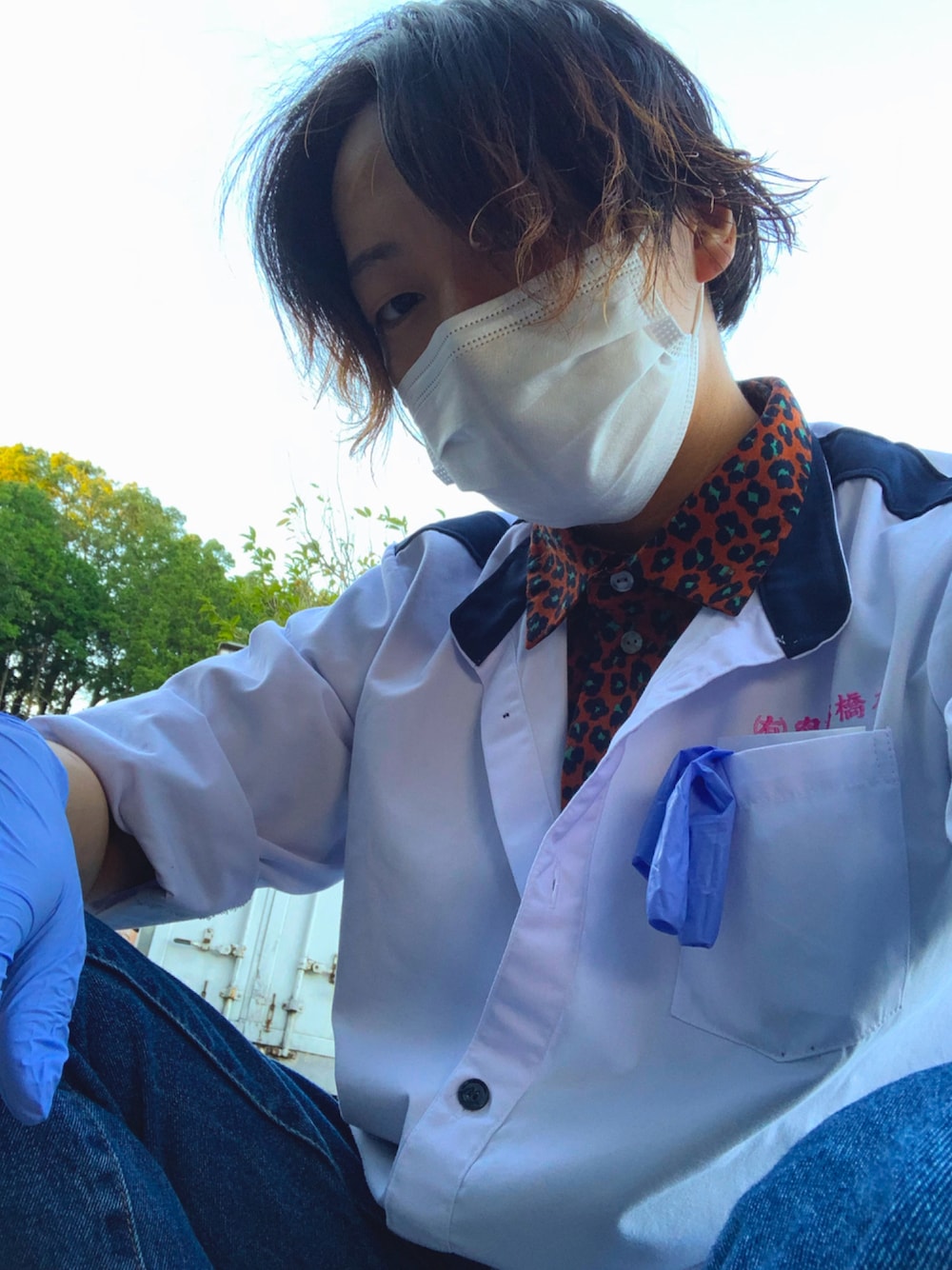 馬刺し屋さんだからこそ… レオパード柄 馬刺し屋さんだけど… 取り扱いの無いレオパード チラッと見せたいレオパード柄 だけどしっかり見て欲しいレオパード柄 そんな矛盾したレオパード柄 パンツはデニムのフレアパンツ👖 作業着の白とパンツのネイビーで 多少は清潔感出てるはず そして胸元には会社ロゴのワンポイント つまるところ馬刺し屋さんですが何か?笑
