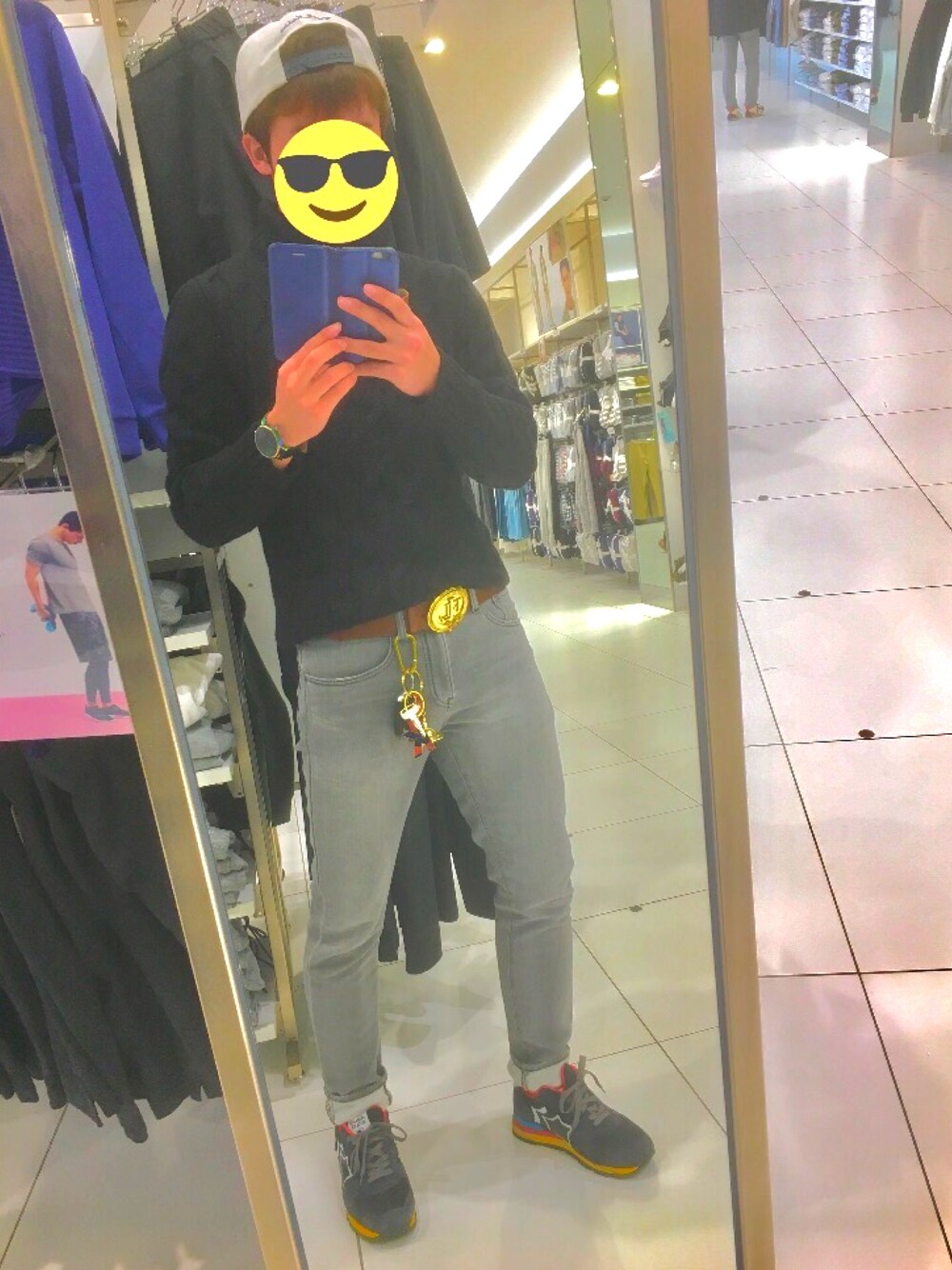 Today'sコーデ✌️✌️ 今日は暗めのスタイル✋️ 黒のニットにグレーのパンツ足元は黒主体のスニーカーで暗めに仕上げました✌️ フォロー、いいね、コメント待ってます😊