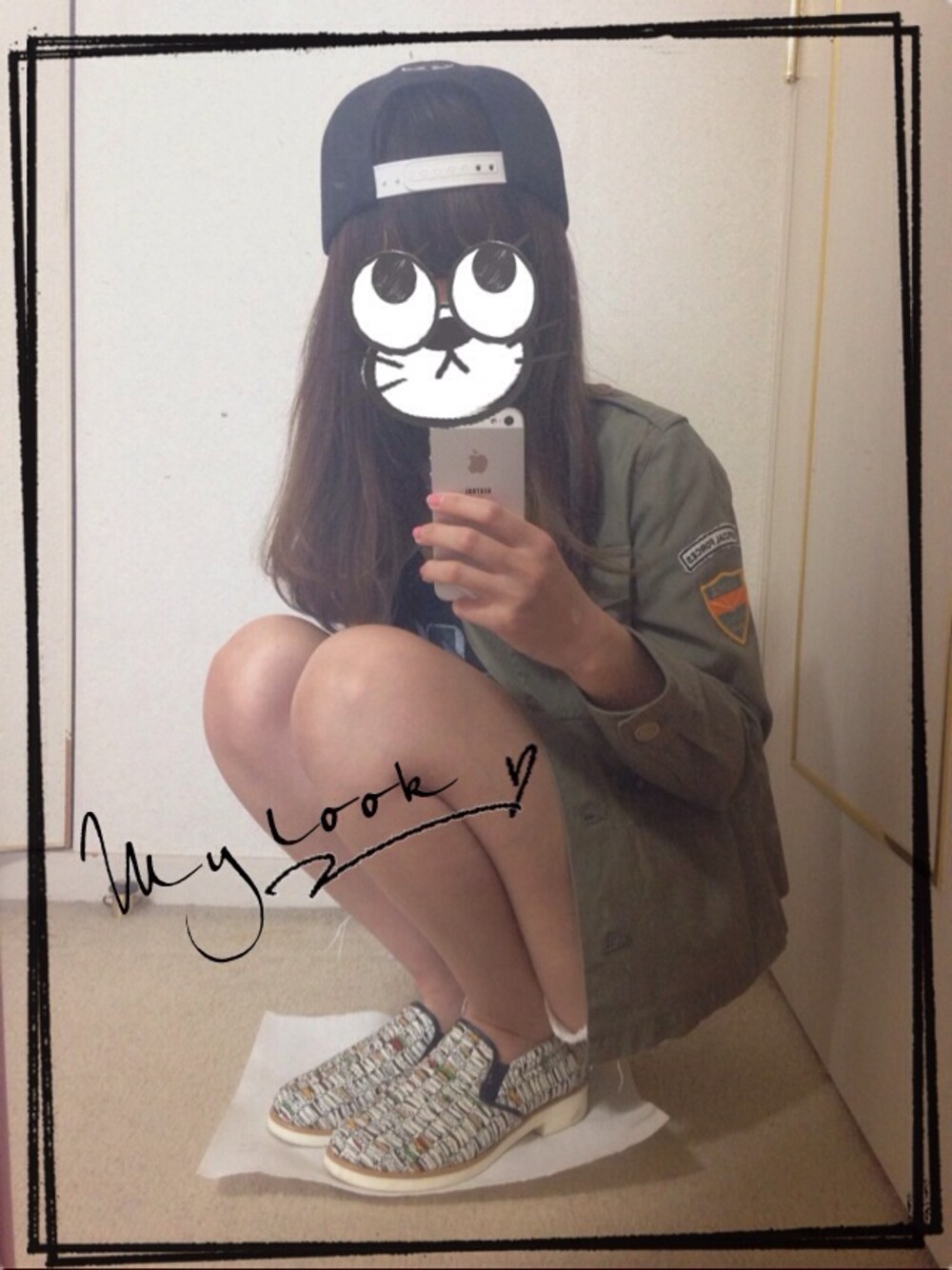 ミリタリーシャツ:ehka sopo このスリッポン!! 写真だとわかりづらいかもですが ハンバーガーの柄なんです!! 柄スニーカーは出番が少ないけど 可愛いのあるとついつい買ってしまいます… スリッポン以外全部去年の服です^^;