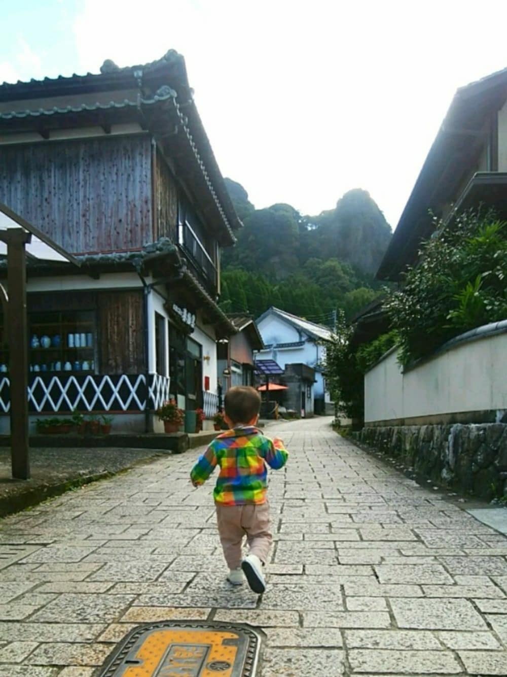 伊万里大川内山。 焼き物いっーぱい見てきました。 1歳児連れての焼き物閲覧はハードモードすぎた💀 坂道をムーンウォークする子の手を繋いで降りる大人たち🏃🌛 坂道は楽しいよねー景色も気候も良くてなおさら楽しかったみたいでよかった🎵 走り回って暑くなったのか着てたベストほぼ意味なーし🐥