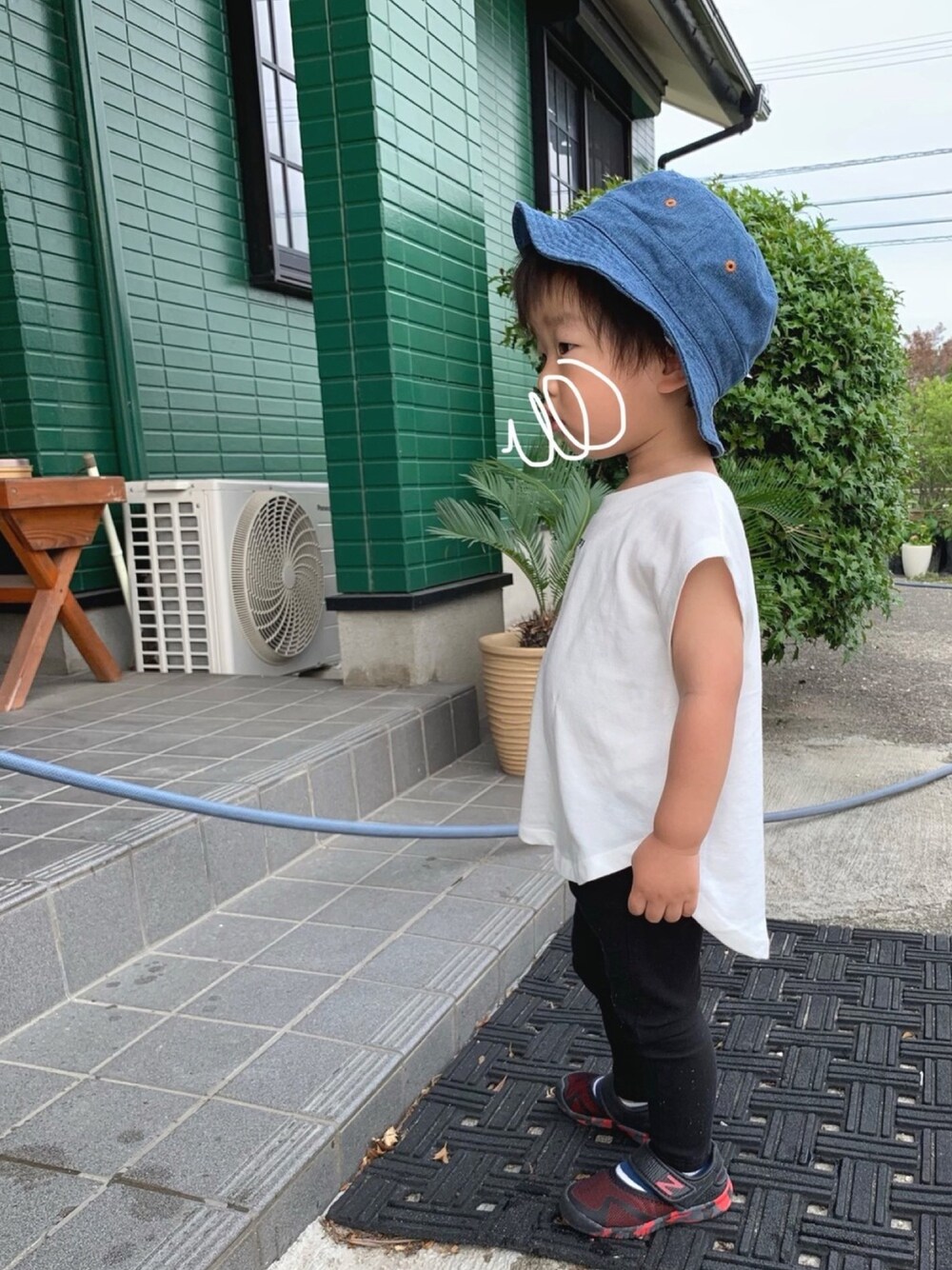 じーちゃん大好き。 CPTYのTシャツ可愛すぎる。 真夏のように暑いので真夏の格好🌞 お腹がぽこりんしてる🐷