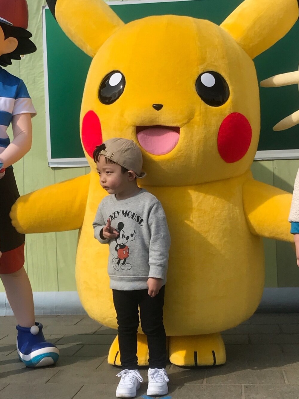 ピカチュウとの撮影に全く喜びを感じていない息子